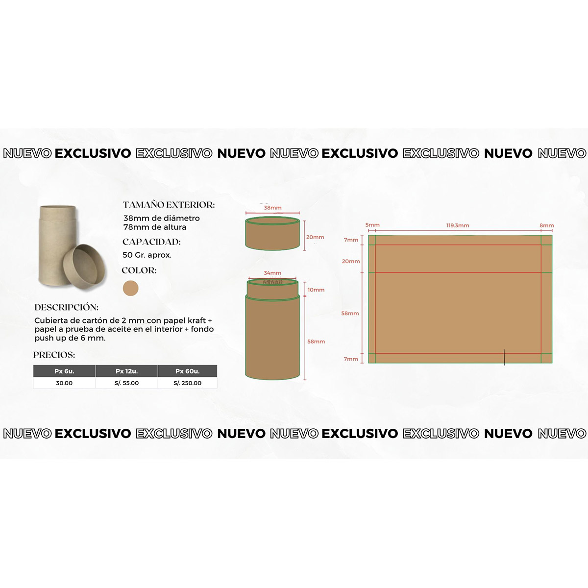 | Cantidad | 6 Unds., 12 Unds., 60 Unds., 12 UND. (DOCENA), 6 UND. (MEDIA DOCENA), 5 DOCENAS (60 UNDS.) |